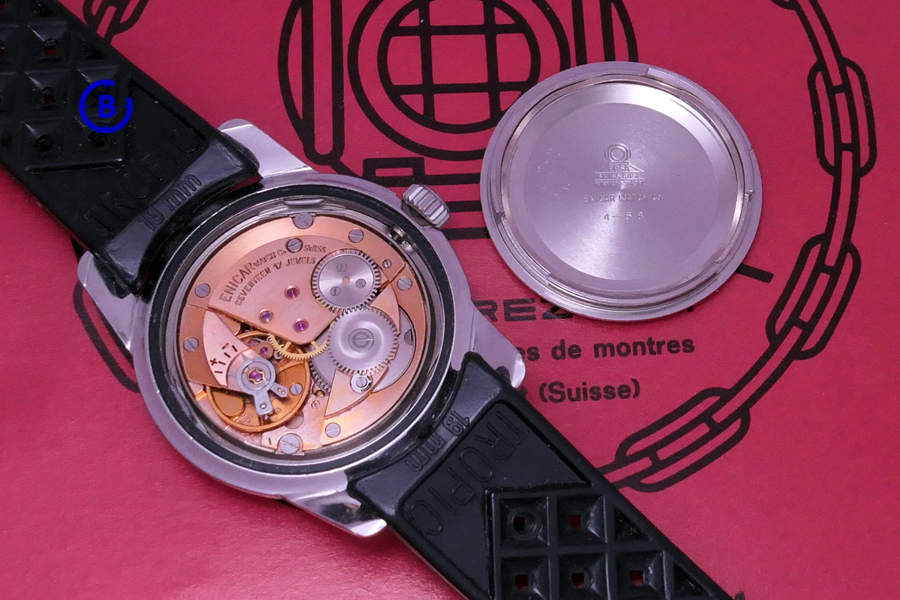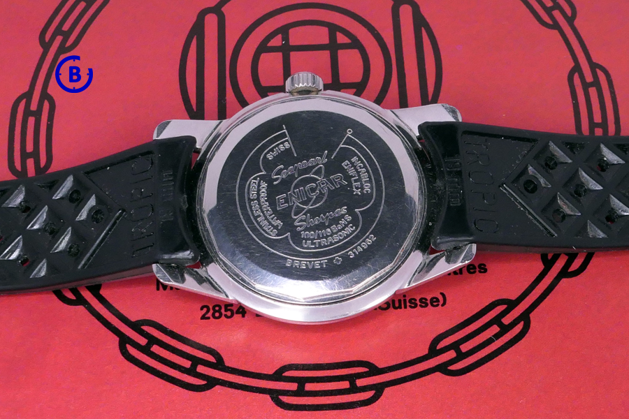 On the back there is no divers helmet, but the Seapearl engraving. Seapearl were introduced in 1956 as Enicar waterproof line.