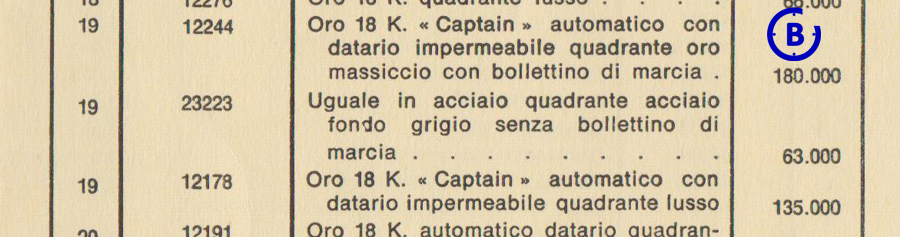 Back in 1964 the 12244 was 180.000 Italian Lire in gold and 63.000 Lire in stainless steel.
