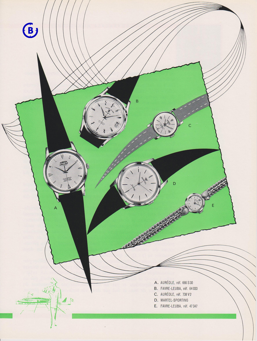 Here is another example of a Favre-Leuba watch with similar bevels, document from the 1959 Basel Fair.