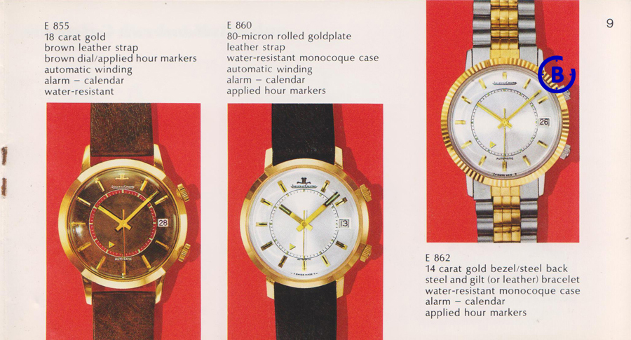 The only document I have showing the E 855 with patterned dial is this page from the 1970 Jaeger-LeCoultre catalogue: