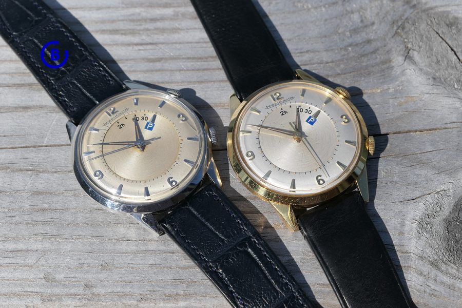Now, side-by-side my two Memovox Parking 3161. Look at the stainless steel version – each hour divided into five spaces…