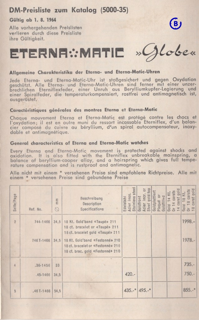 Here is a scan from the 1964 Eterna-Matic catalogue showing several versions of the Centenaire and the Centenaire 61.
