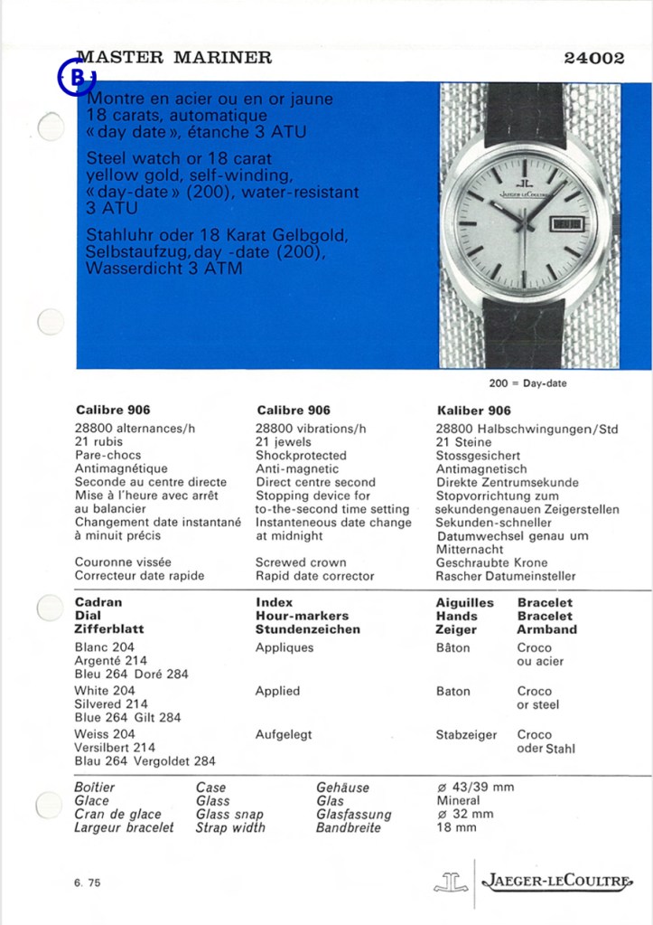The Calibre 906 which is used in all the reference 2400X Master Mariner were, according to some sources, in production between 1973 and 1975.