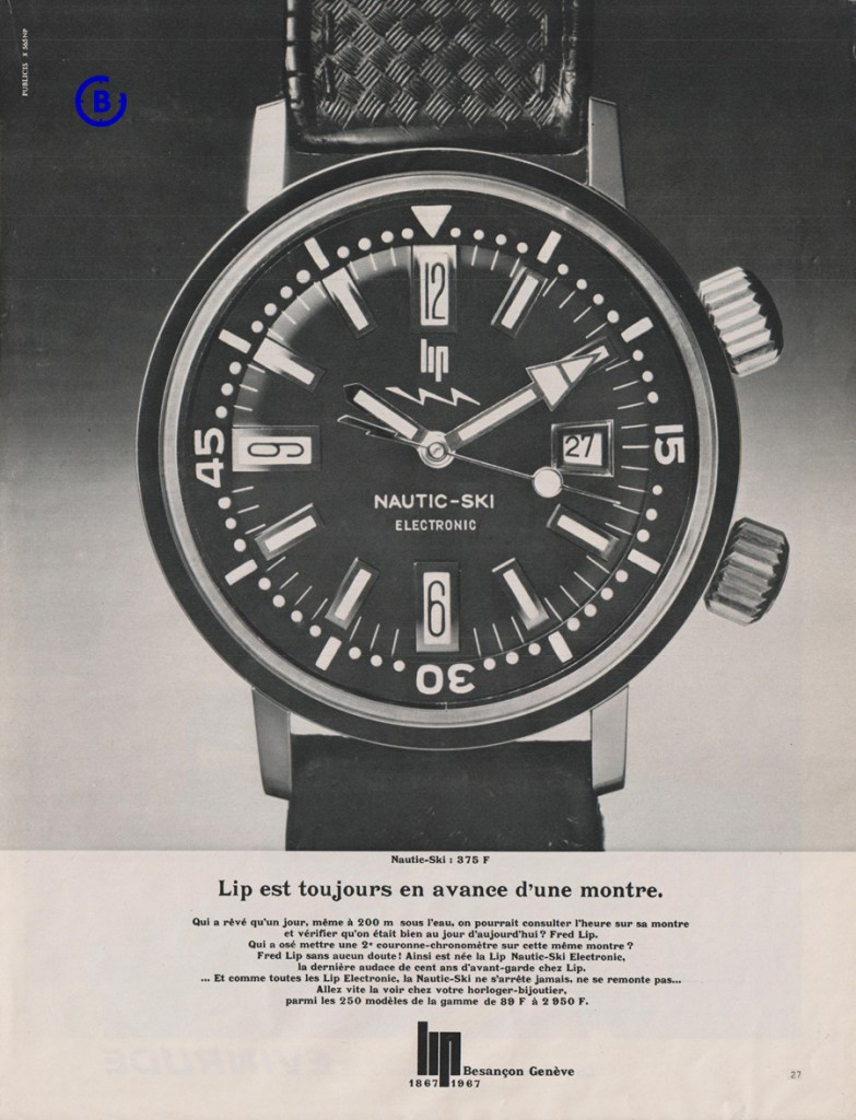 There were even electronic two crown Super Compressor cased watches, like Lip as shown in the ad below.