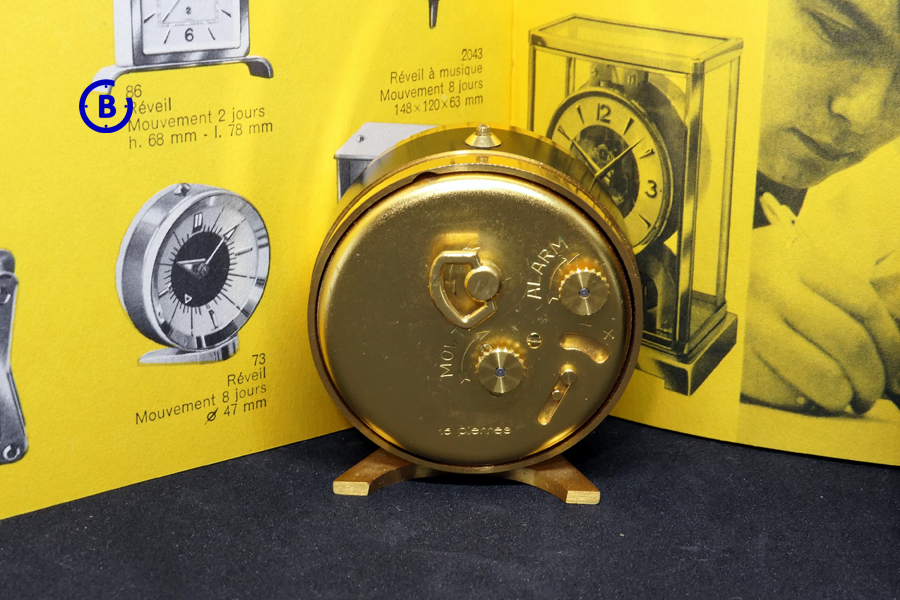 Here is a scan from the 1960 Jaeger-LeCoultre catalogue showing the clock 73. The clock reference 69 from the Jubilé Collection is also shown, you can read about it here: clock 69