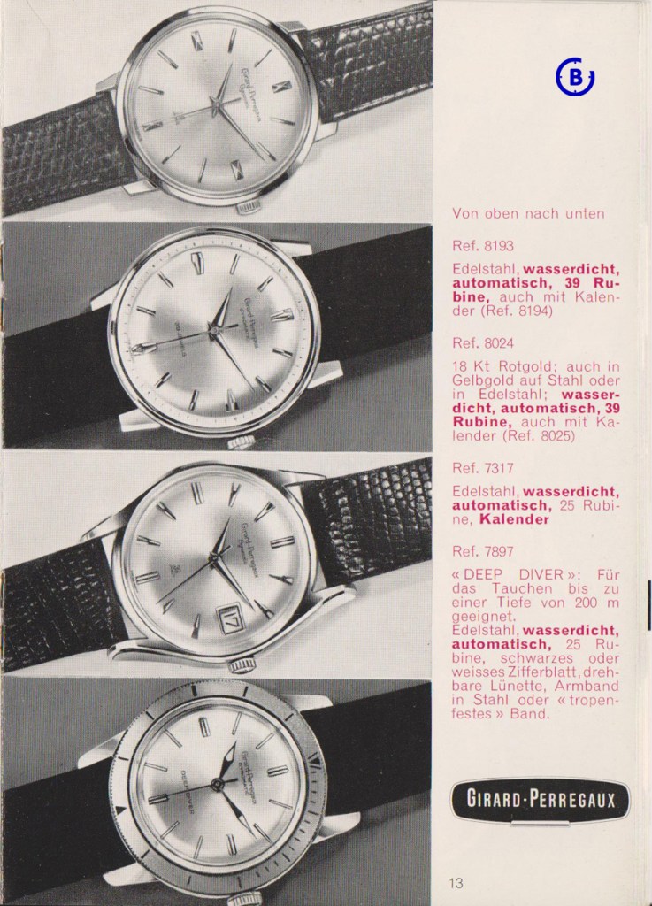 Here the silver dial version is featured in the German Girard-Perregaux catalogue from 1963: