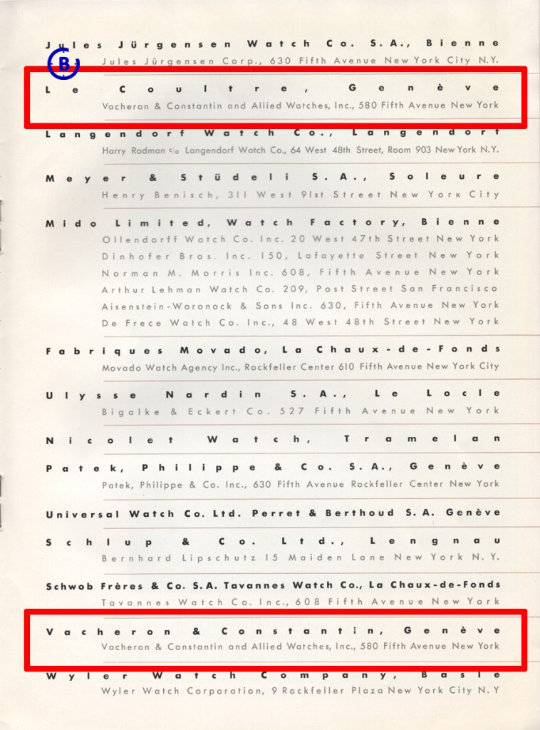 As stated, my interpretation is that one part of the relation in the U.S. between Jaeger-LeCoultre and Vacheron & Constantin was about the right to import and distribute LeCoultre watches.