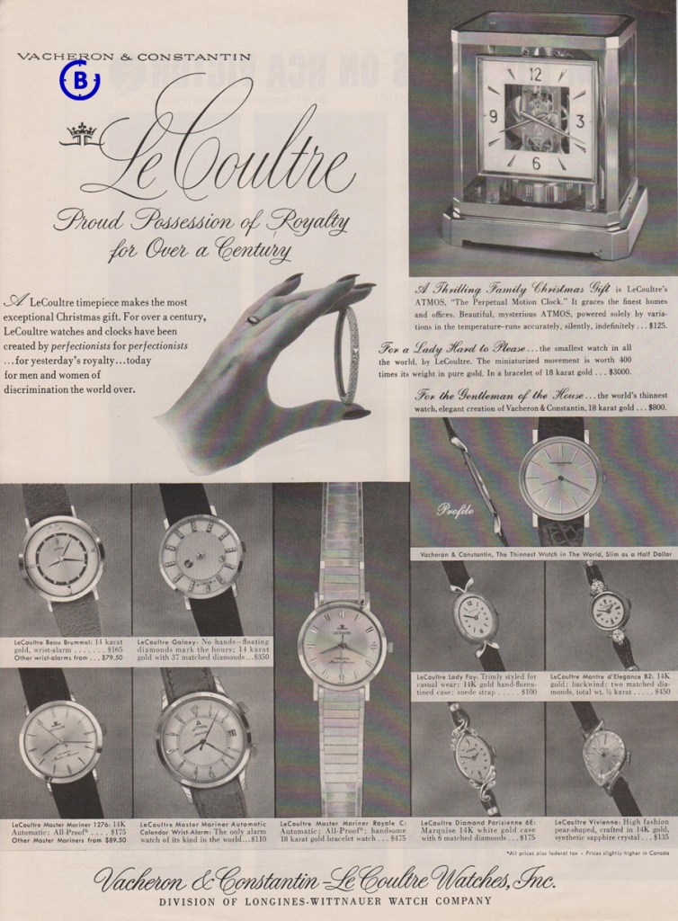 And here, another example, a Christmas catalogue from 1961 featuring watches from Longines, Wittnauer and LeCoultre.