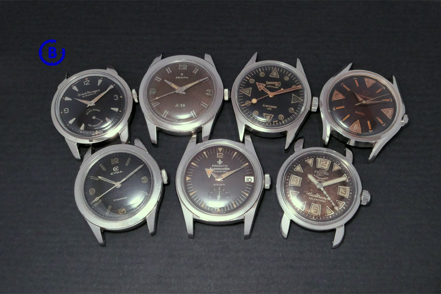 These were all originally black dial watches, but several of them existed also with white dials… One day we will look into these as well…