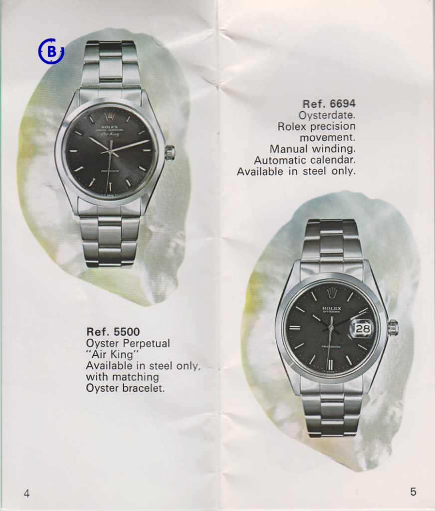 Here the 5500 is featured in the 1977 Rolex catalogue, my Air-King being from the year after…