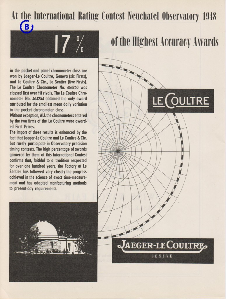 In the year of 1948, Jaeger-LeCoultre which didn’t submit their movements to the Observatory on regular basis joined the competition.