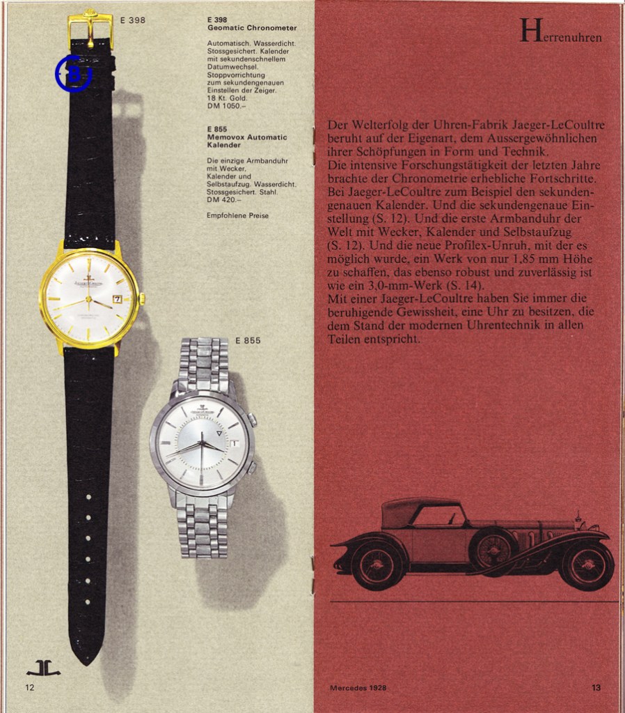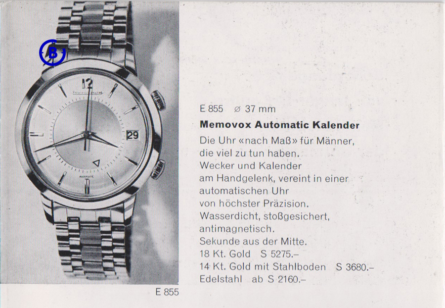Below I like to show a scan from the 1965 Jaeger-LeCoultre catalogue – at start it looks like any other catalogue scan, but I find this one interesting due to it confirms several details.