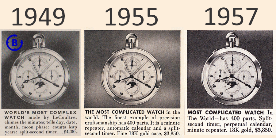 During the 1940’s and 1950’s Jaeger-LeCoultre had one even more complicated watch in their catalogue – a pocket watch: “the most complicated watch in the world“!