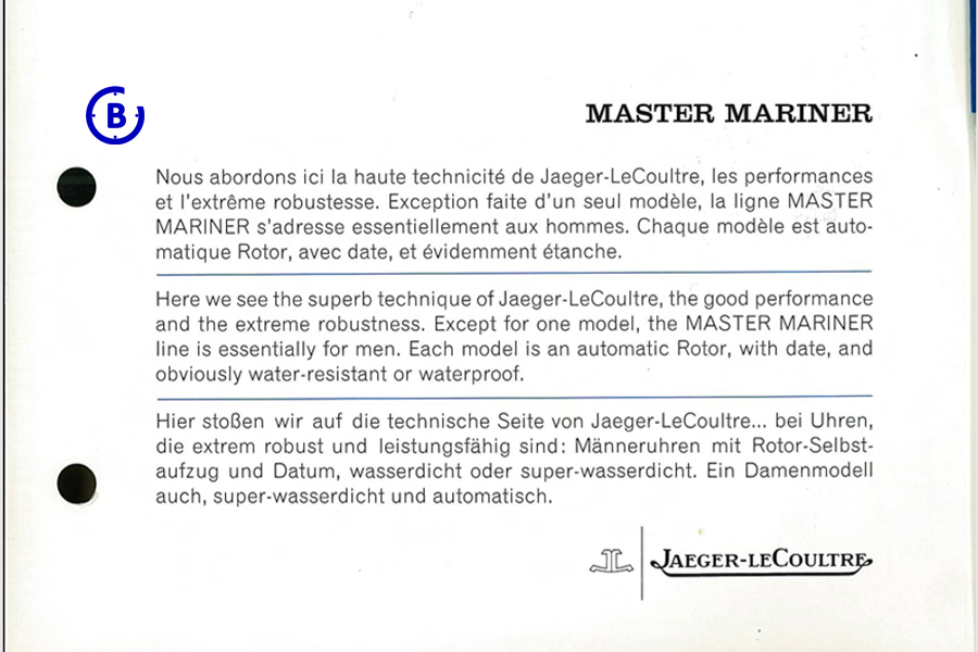 First trace of the Master Mariner name used together with Jaeger-LeCoultre I have is found in the 1967 French catalogue.