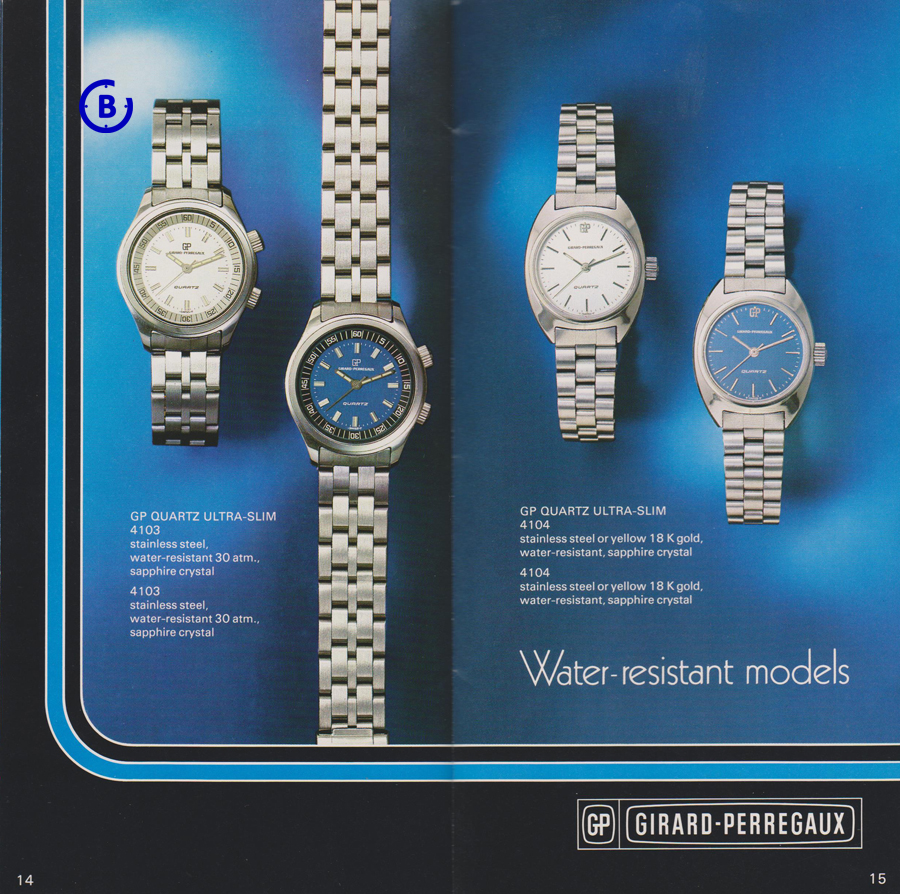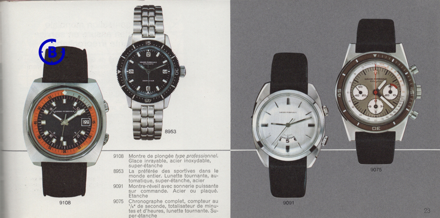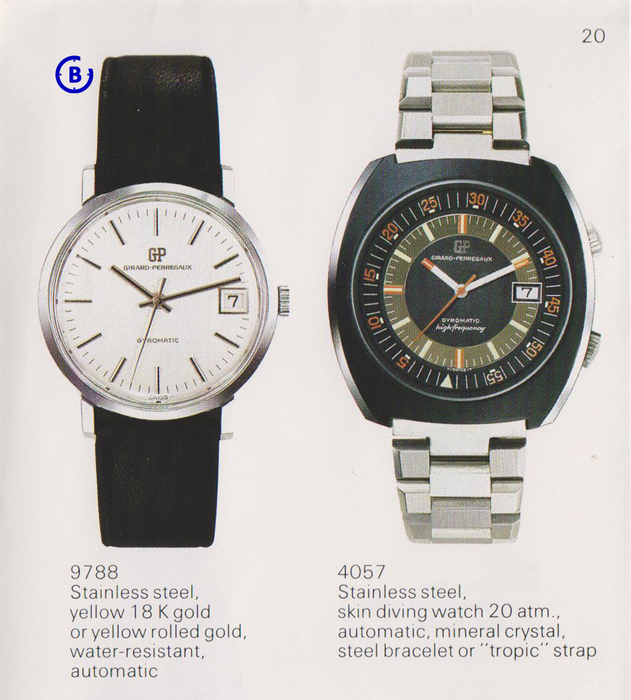 Another interesting fact is that the 9076 Deep Diver and the 9108 Deep Diver were both in the Girard-Perregaux at the same time – here is a scan from the 1971 Girard-Perregaux U.S. catalogue showing them side-by-side: