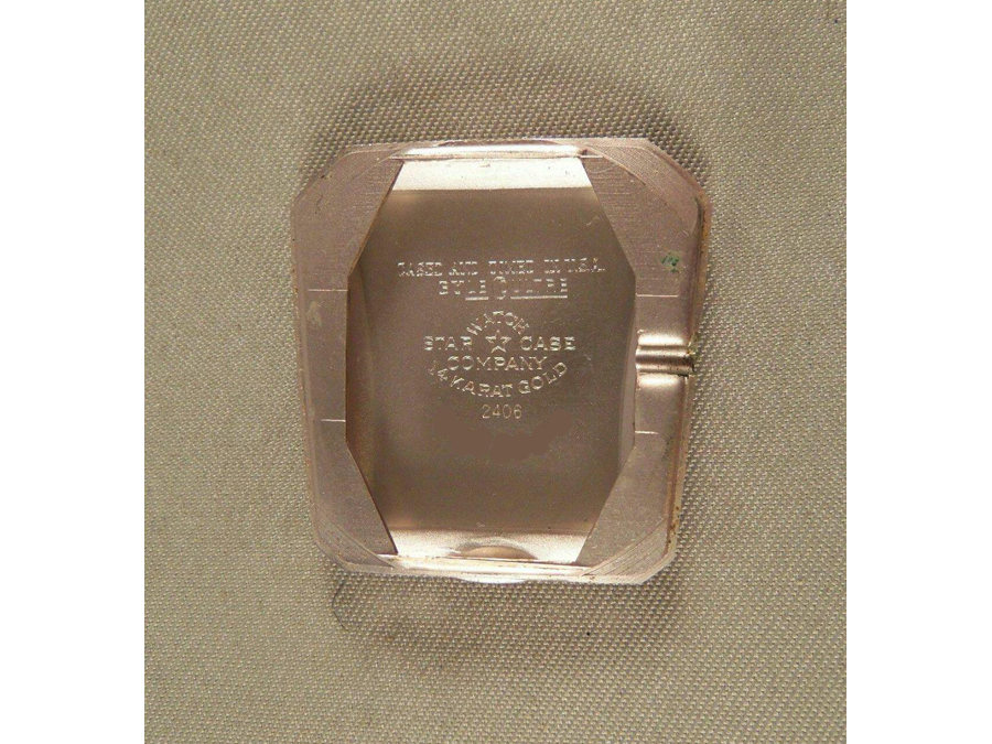The inside of the case tells the story – Cased and timed in U.S.A. The case is made locally by the Star Watch Case Company, in 14K gold – reference 2406:
