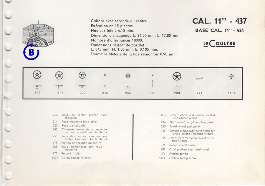 Here, a movement specification shared by the Jaeger-LeCoultre Heritage Gallery for the Calibre 437: