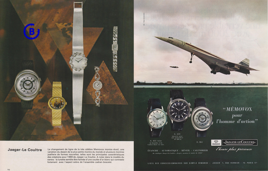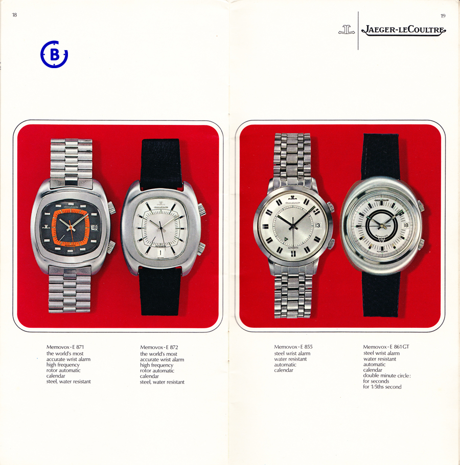 Another variation I found is shown in the British 1970 ad – here the E 861 is featured on a more “traditional” NSA Memovox bracelet: