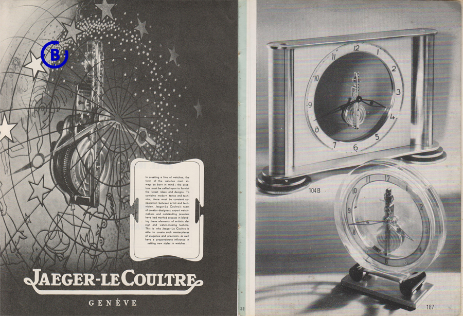 Here a couple of early examples – left, advertisement from 1948 and right, Jaeger-LeCoultre catalogue from 1945: