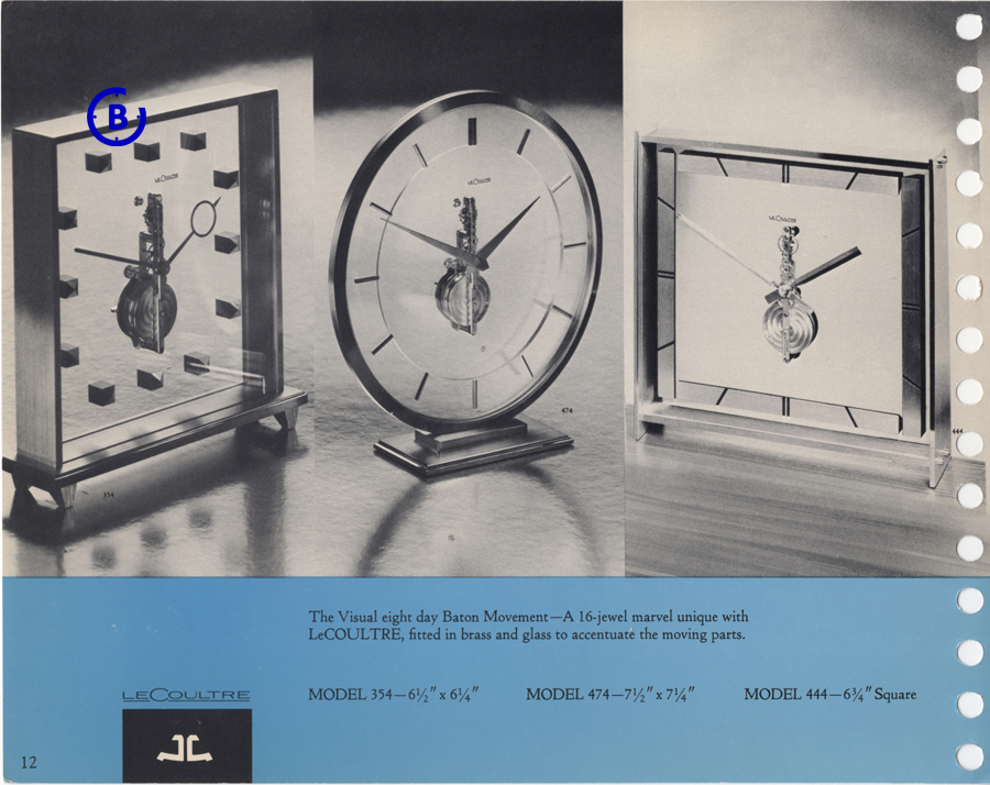Left, 1960 LeCoultre Clock pamphlet – right 1965 LeCoultre catalogue: