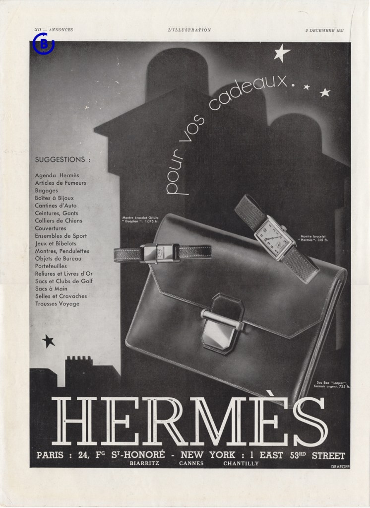 Here is an ad from the 5th of December 1931 – Hermès advertising watches before Christmas, hoping people would chose to go for “hard” packages under the tree…